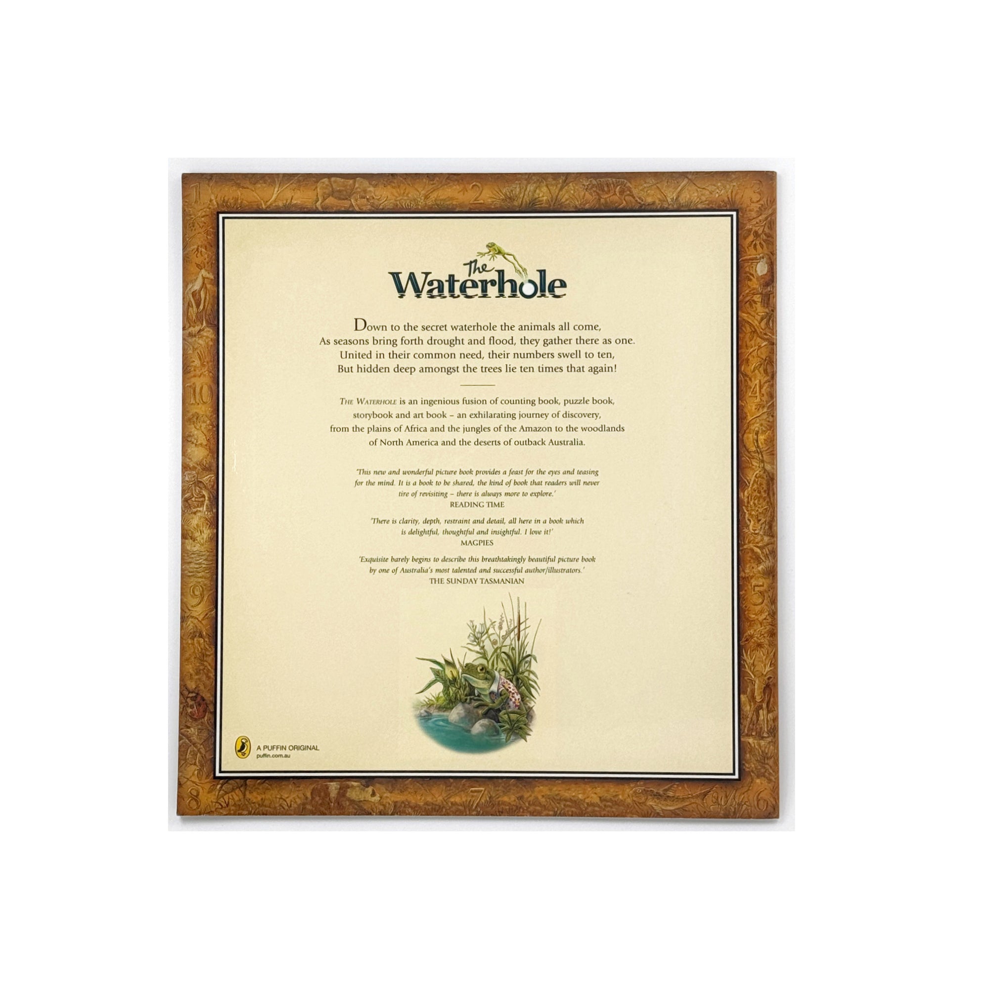 Other favourites by Graeme Base include The Eleventh Hour, My Grandma Lived in Gooligulch, The Sign of the Seahorse, The Discovery of Dragons, The Worst Band in the Universe,The Waterhole (and The Waterhole Board Book), Jungle Drums and Uno's Garden. In 2007 this last title featured in six major awards and was winner of three: Speech Pathology Book of the Year, younger readers; The Green Earth Book, USA; The Wilderness Society Environment Award.